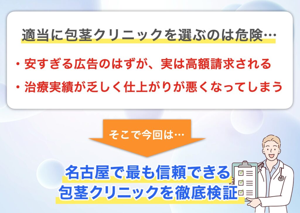 とはいえ、包茎クリニックを適当に選ぶと、高額請求されたり、仕上がりが悪くなってしまうことも少なくありません。