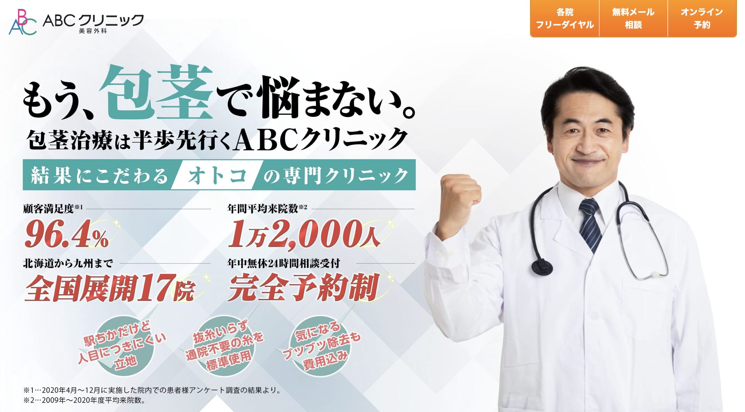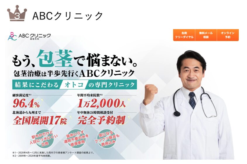 大宮で最も信頼できる包茎クリニック第3位は、治療実績16万件を誇る『ABCクリニック美容外科』です。
