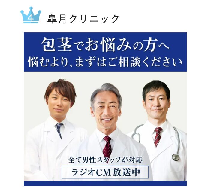 大宮で最も信頼できる包茎クリニック第4位は、ラジオCMでおなじみの『皐月クリニック』です。