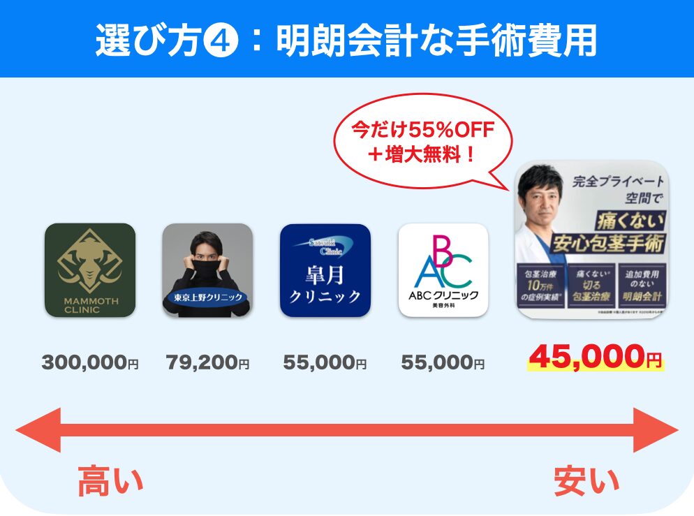 包茎手術クリニックを選ぶ際は、手術費用が相場内で、明朗会計のところを選ぶのがおすすめです。