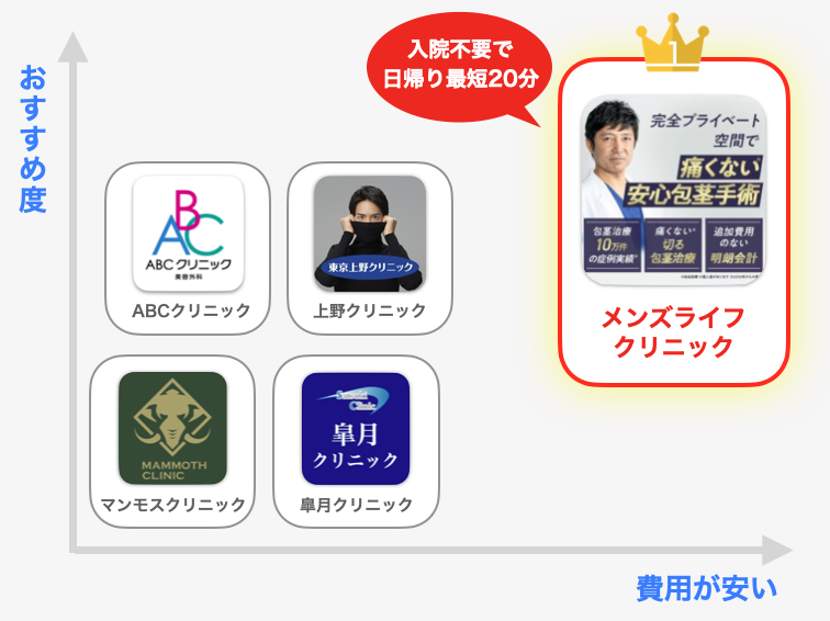 実績や経験、痛み、料金など、どれをとってもNo.1のおすすめ包茎クリニックなので、気になる方はぜひチェックしてみてください。