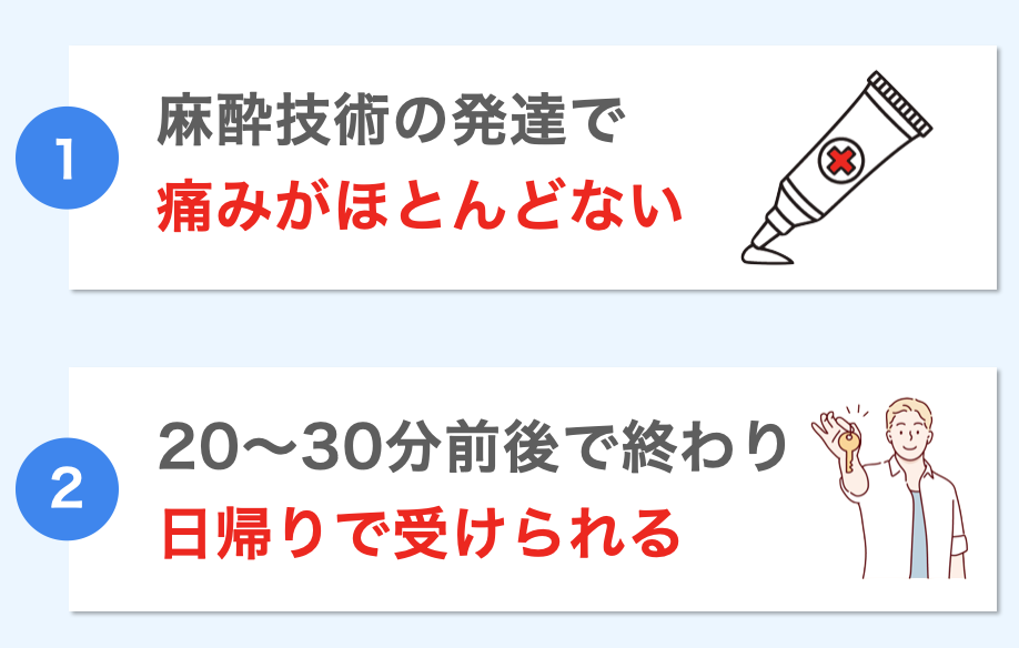 「痛そうで怖い」と思っていた方にとって、かなり嬉しいポイントですね。