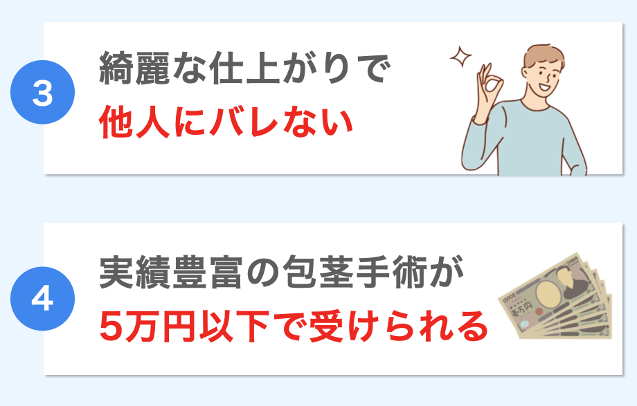 他のクリニックと比べてもやや高めではありますが、実績あるクリニックで包茎治療をしたい方にはおすすめです。