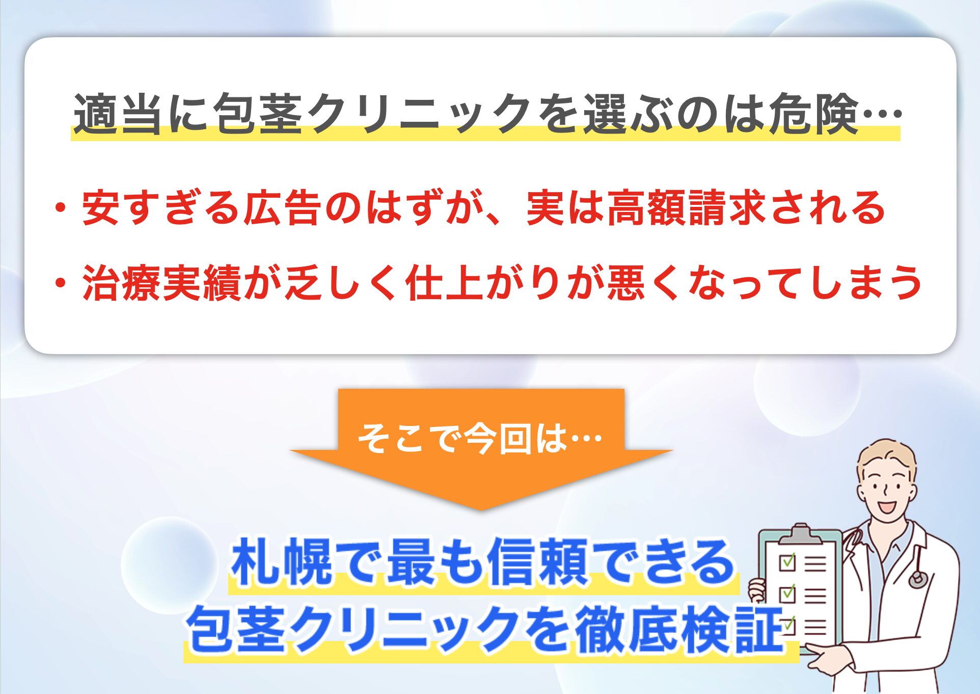 とはいえ、包茎クリニックを適当に選ぶと、高額請求されたり、仕上がりが悪くなってしまうことも少なくありません。