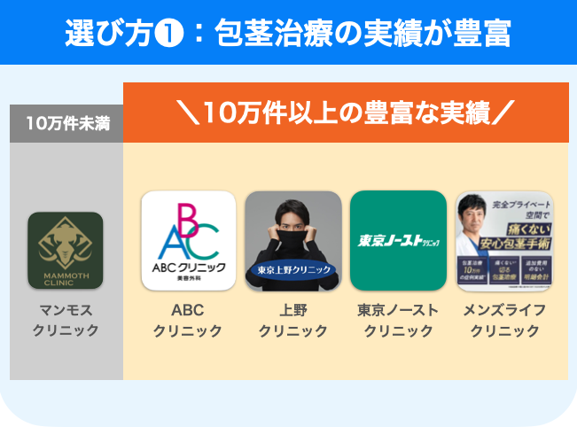 そのため、包茎の手術実績が10万件以上あるクリニックを選べば、まず間違いありません。