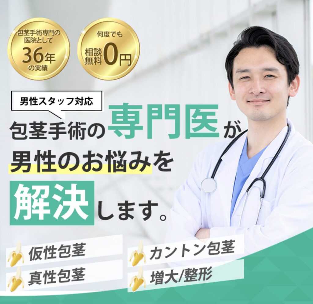 | 実績 | 包茎専門医30年、手術実績10万件以上 |