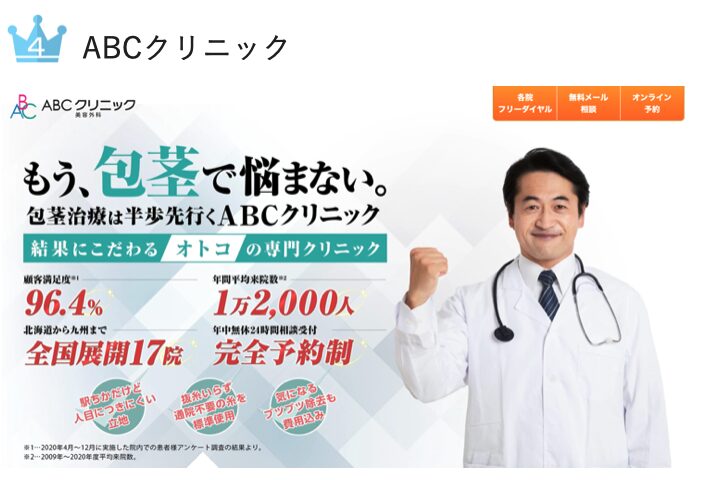 札幌で最も信頼できる包茎クリニック第4位は、治療実績16万件を誇る『ABCクリニック美容外科』です。