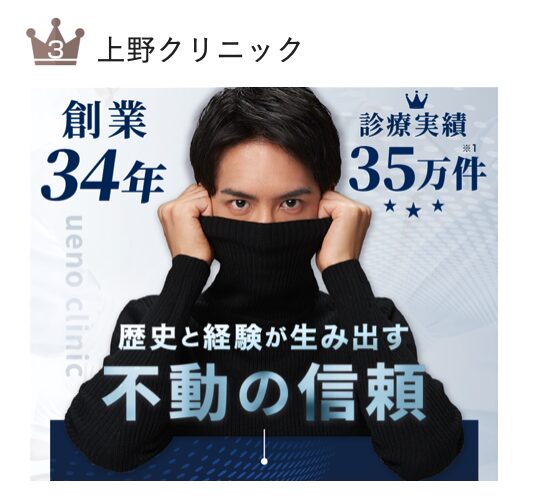 札幌で最も信頼できる包茎クリニック第3位は、雑誌やCMなどでおなじみの『上野クリニック』です。