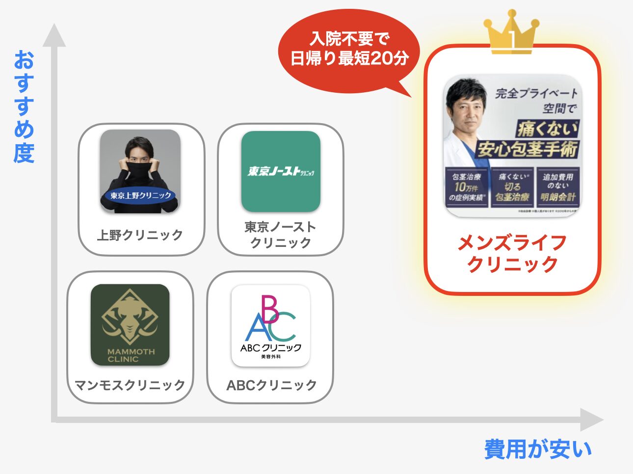 実績や経験、痛み、料金など、どれをとってもNo.1のおすすめ包茎クリニックなので、気になる方はぜひチェックしてみてください。